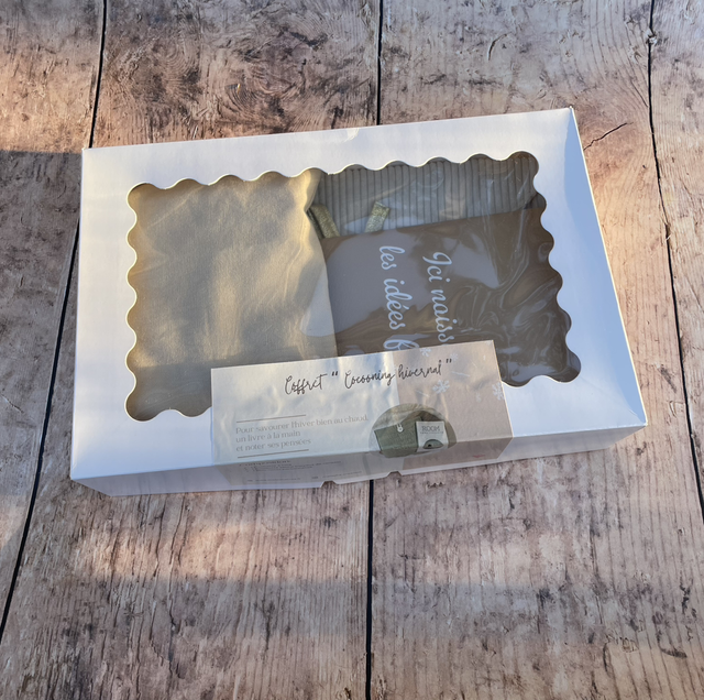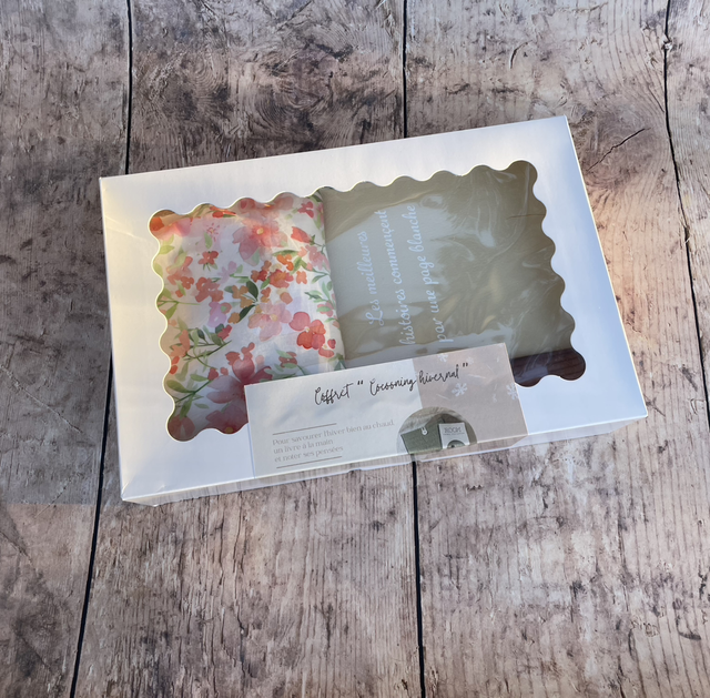 Offrez-vous un instant de douceur avec notre Coffret cocooning hivernal : une bouillotte sèche aux noyaux de cerises (à chauffer 1 min 30 à 2 min à 700W) pour une chaleur naturelle, une pochette à livre pour accompagner vos lectures, et un bloc-notes pour vos pensées du moment.